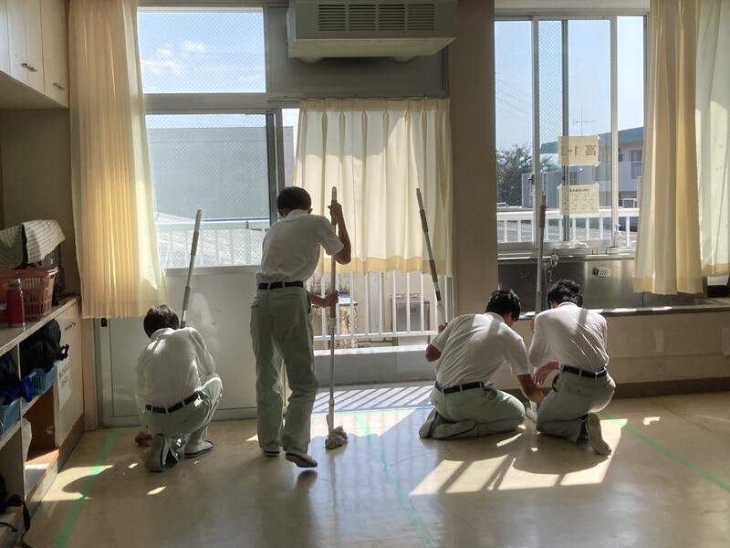 後期現場実習「校内自立班の取り組み」として10日間の日程で、校内自立班では、「学校への貢献」をテーマに活動に取り組みました。活動では、体育大会用のお手玉づくりで安全に配慮しながら教師と協働して中身を丁寧に準備したほか、環境美化として晴天時の除草や雨天時に体育館のモップ掛けに取り組みました。特に清掃作業では、慣れないモップに苦戦しつつも教師と一緒に活動をやり遂げました。この現場実習を通じて、普段はなかなか関わる機会のない様々な学校の先生方や教師の方々と交流することができ、新しい関係性を築くことができたと思われます。