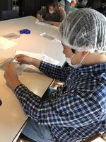 3学期になると、1・2年生は進級に向けて希望する作業班を考えるために、各班を見学します。見学される作業班はいつもと同じように作業をしますが、回ってきた学年の生徒たちに説明したり、質問の受け答えをしたりと、1年間の成果も見ることもできました。これまでやってきた自分達の活動に自信を持って行う姿は、とても生き生きしています。見学する生徒も興味深くワクワクしながら見学することができ、みんなが有意義な時間を過ごすことができました。(中学部3年生も、先日見学に来ました。)