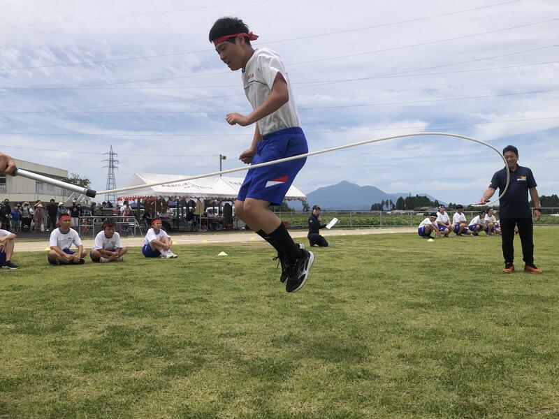 5月17日(土)に予定されていた体育大会が雨天延期となり、5月22日(木)に開催されました。朝の時点で雲がかかっていた霧島山も次第にきれいに姿を現し、生徒達の頑張りを応援してくれていました。時折降り出す雨に一時中断やプログラムの入れ替えなどはあったものの、生徒達がこれまで積み重ねてきた練習の成果を十分に発揮できた大会になりました。赤団優勝という結果ではありましたが、勝敗を超えた素晴らしい大会でした。