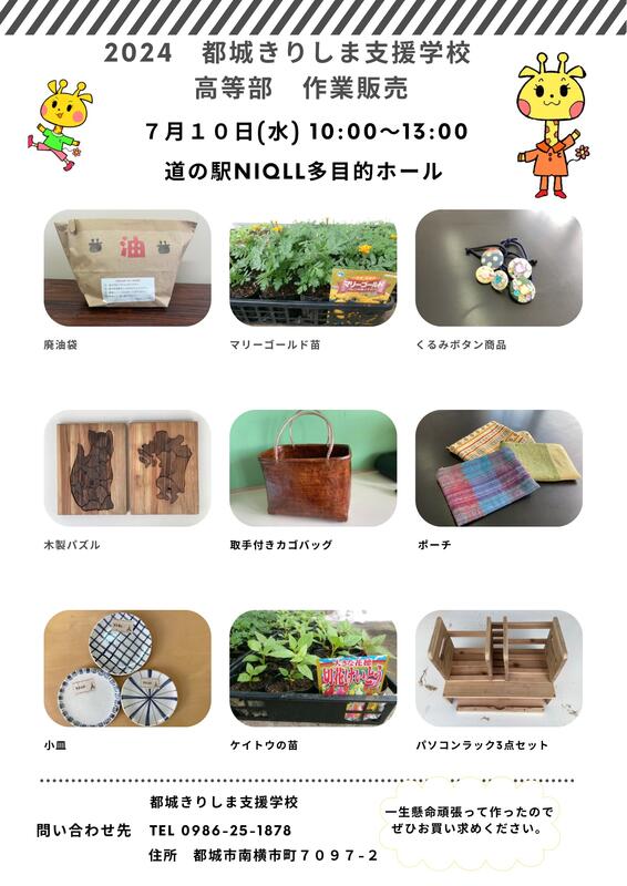 第1回は、道の駅「都城NiQLL」で、生徒たちが作業学習で製作した製品を販売します。