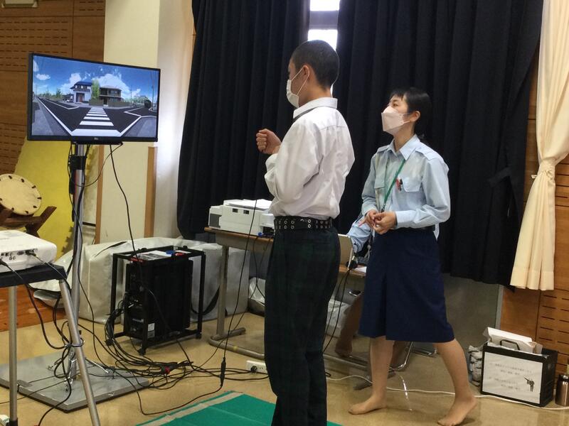 高等部では学年ごとに、交通安全教室が行われました。横断歩道の渡り方を学ぶ班や、自転車の安全な乗り方、点検の仕方を学ぶ班に分かれての学習です。横断歩道の渡り方を学ぶ班では、どのタイミングで渡るのが良いのか、どこを確認すれば良いのかなど、画面上のシミュレーションを操作しながら学べる初めての体験でした。自転車に乗る班では、乗る前の自転車点検の大切さも学びました。日頃、交通ルールを意識しながら生活できているだろうか、振り返る良い機会になりました。