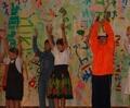例年通り上学年(4・5・6年生)がおもてなし係として招待状を作って配り、ゲームの準備やリハーサルに頑張って取り組んで来ました。当日招かれた下学年(1・2・3年生)は、招待状を手に会場に入り、スタンプをポンと押してもらうと手渡されたはっぴを羽織り、魚釣りや的当てのゲームを楽しみ、お祭り気分を存分に味わいました。