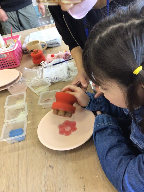 今回は粘土の感触体験と皿の絵付け体験をしました。