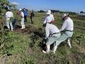 10月になりましたが、昼間は夏日になるなど、秋はどこにと思いながら作業に取り組んでいます。作物も夏野菜から冬野菜に移る期間となっています。畑では夏野菜の片付けと、冬野菜の植付けのための畑づくりに取り組んでいます。深く根を張っている作物は一人で抜くのは難しく、仲間と協力して抜いていました。畑づくりでは堆肥や肥料をまいて、鍬を使って土と混ぜる作業に取り組みました。決められた量を満遍なくまいたり、鍬を使ったり、体力を非常に使う作業で、終わったころにはヘトヘトです。