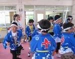 いよいよ夏祭り本番です!「わっしょい・わっしょい」とお神輿を担いで校内を練り歩いた後は、「祭り」を元気いっぱい踊りました。