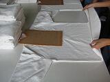 ホテルのタオルや衣類をたたむ作業に1時間くらい取り組みました。