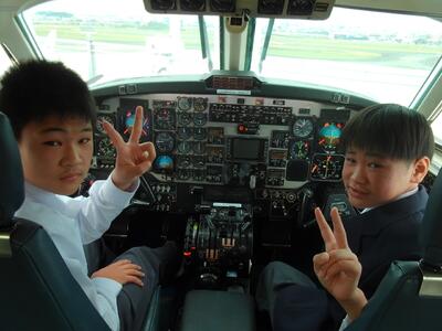 宮崎空港では屋上に展示してある飛行機に乗りました。