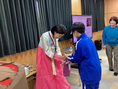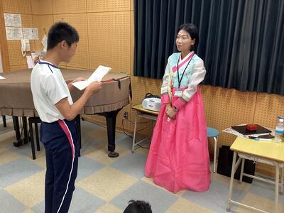 生徒たちも興味津々で、質問したり、会話を楽しんだりしながら、韓国文化にぐっと近づく時間になりました。