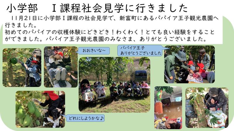 小学部Ⅰ課程の社会見学で、新富町にあるパパイア王子観光農園へ行きました。