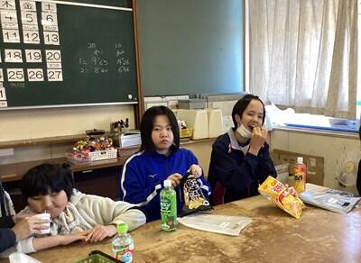 中学部では、2学期の作業学習反省会を行いました。これまでの取り組みを振り返り、報告会で頑張りを共有しました。その後は、販売会の売り上げで購入したジュースやお菓子を楽しみながら、お疲れ様会!笑顔いっぱいの時間となり、次への意欲も高まりました✨