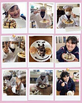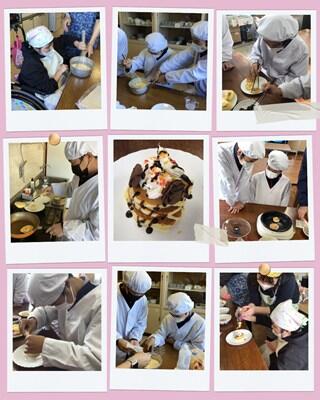 調理学習でホットケーキ作りに挑戦しました!それぞれが工夫してデコレーションを楽しみ、かわいいツリーケーキも完成。出来上がったホットケーキをおいしそうに食べ、笑顔がたくさん見られました。楽しい時間を過ごしながら、達成感も味わうことができました。