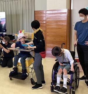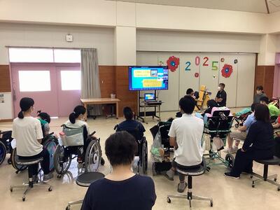 スイッチと連動する画面上の動きや色合いを目で追って楽しむ生徒、音を楽しむ生徒、周囲からの声援を受けて張り切る生徒、等々無理のないスタンスで皆楽しんで取り組みました。