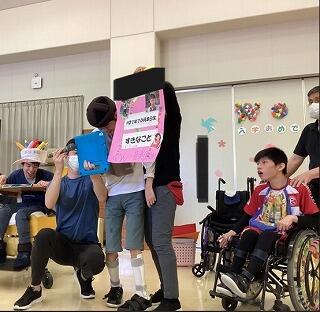 4月21日(月)に高等部で対面式を行いました。新入生の自己紹介に始まり、新転任の教師たちや在校生の自己紹介がありました。1年生の5名の自己紹介は様々でスイッチやタブレットを操作したり、自ら声を発したりするなどして教師と一緒に楽しそうに発表に取り組んでいました。また学級発表では、それぞれの学級のアルファベットに因んで面白おかしく発表を行う学級もありました。今回はその一部の様子をお伝えします。