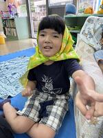 学校生活にも慣れ始め、周りの友だちや先生たちと楽しそうに触れ合う姿が見られます。