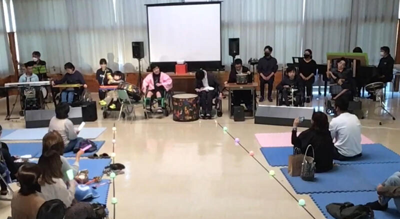スイッチと連動する画面上の動きや色合いを目で追って楽しむ生徒、音を楽しむ生徒、周囲からの声援を受けて張り切る生徒、等々無理のないスタンスで皆楽しんで取り組みました。