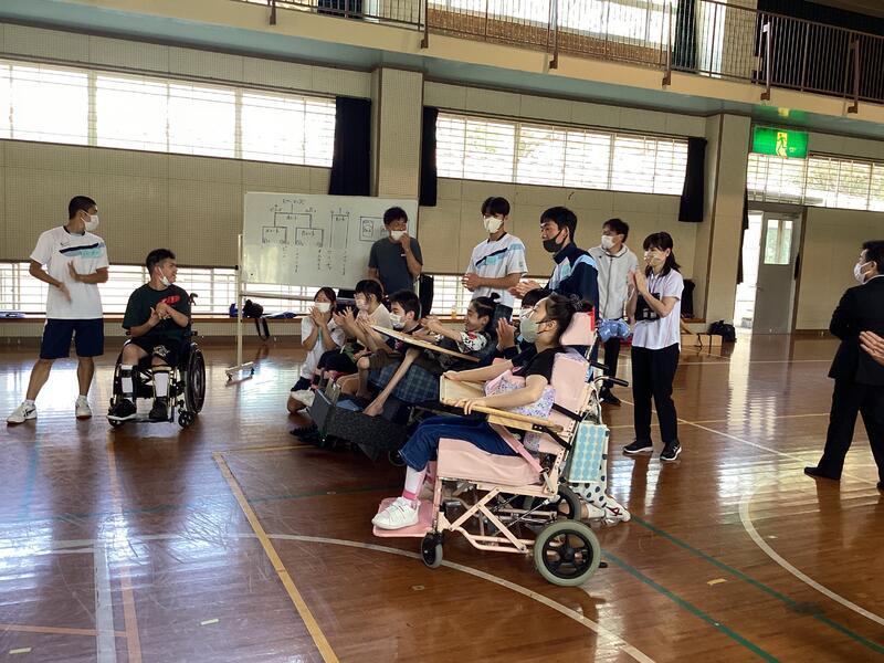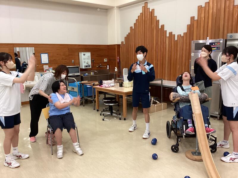 5月21日火曜日に第一高校の生徒が来校し、交流を行いました。3チームに分かれて、ボッチャやターゲットボッチャを楽しみました。第一高校の生徒が積極的に話しかけてくれて、楽しく会話する様子もたくさん見られました。勝敗に関係なく、お互いに応援し、盛り上がっていましたよ。他校の生徒と一緒に活動する機会を持つことができて、コミュニケーションの輪が広がったように思います。