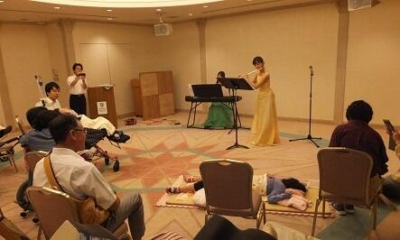 ホテルの中では、ジェルキャンドル作り、入浴後のアロママッサージ体験、作陶体験などの活動をしました。また、夜にはフルートとピアノのミニコンサートが開かれ、楽しく盛り上がりました。