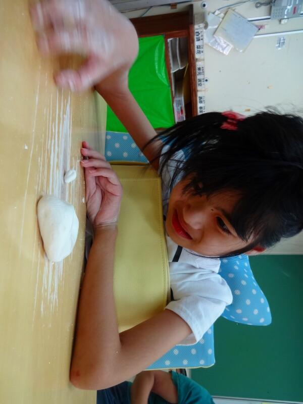 この日は参観日。家族に見守られながらお月見準備。