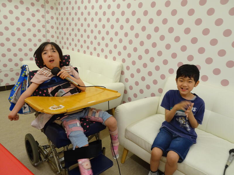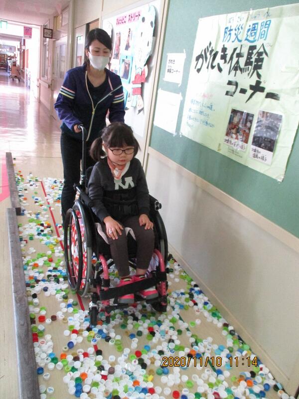 その後は3Dメガネで映画を楽しんだり、車椅子で通ると音が鳴る体験コーナーやプロジェクションマッピングでのサッカーの試合など、