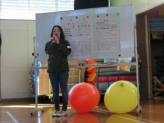 今年の種目は風船バレーです。イベント係の皆さんが準備・運営を担当します。