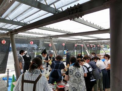 お祭り当日は、うだるような暑さの中、みんなで焼きそばや、ポップコーン、