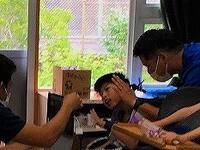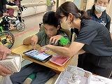 6月12日に、進路学習で施設見学へ行きました。質問にたくさん答えていただき、動物とふれ合い、ウォーターベッド体験をさせてもらい、あっという間に見学の終わりの時間が来てしまいました。昼食では、ドリンクバーを注文し色々な飲み物に挑戦しました。電車や珍しい乗り物、黄色いポストなど発見しながら楽しみました。予算内で計算しながら買い物も出来ました。元気よく笑顔で帰ってくることができてよかったです。