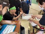 毎年恒例の中学部夏祭りが行われました。全員でかえるのあめふり音頭を踊った後は、それぞれのグループに分かれて、出店を体験しました。魚釣りやボウリング、射的など・・・グループ全員クリアできたらカードにシールを貼りました。午後からは、かき氷屋やくじ引き付き駄菓子屋を体験し、最後は皆で作った花火を鑑賞しました。たくさんの笑顔が見られた一日でした。