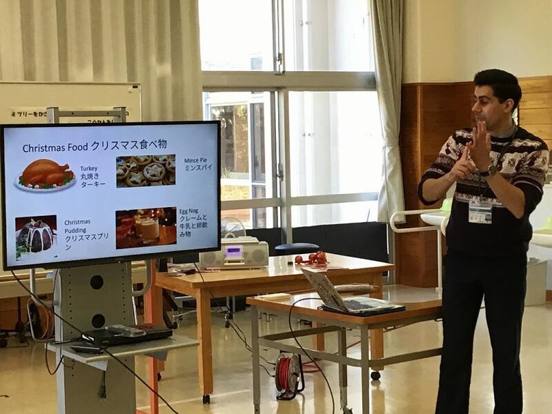 12月10日(火)国際交流計画の一環として、ALTのキラン先生とのクリスマス交流を行いました。本校高等部生徒は、今回13名の参加でした。先生はイギリス出身で、英国のクリスマスの迎え方を教えていただきました。英語での挨拶から始まり、クリスマスカードの交換など楽しい雰囲気で交流を行うことができました。今回2回目のキランさんとの交流で、お互いに交流を深めることができました。