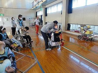 座位保持椅子、電動車椅子、ウォーカーなど、使用しているものや生徒それぞれの体の動 きは違いますが、
