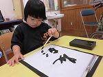 入学してはじめての習字。大きい筆、小さい筆をつかって自由にのびのびと