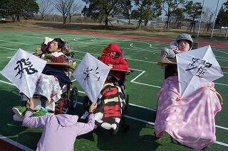 最後は凧に見立てた書き初めと着物姿で撮影会。