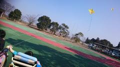 完成して、早速校庭でたこあげをしました。