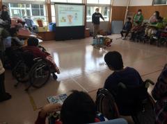 大きな筆を使って、大きな紙に、それぞれの今年の目標を漢字一文字で表現しました。迫力のある作品に仕上がっています。