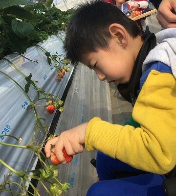 みんなもどのいちごを取ろうか真剣に悩みながら、一人約250グラム収穫しました。