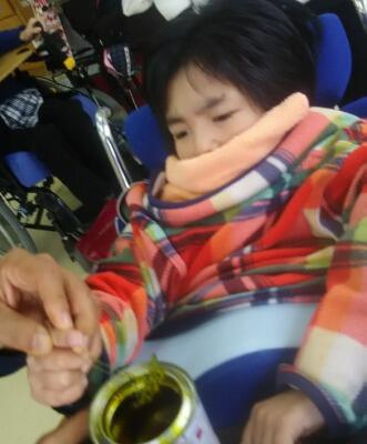 週に4時間作業学習を行っています。作業学習では、窯業班とクリーニング班の二つがあります。窯業班は現在「アメリカンフラワー」の制作に取りかかっています。高等部1年の3名は初めて「アメリカンフラワー」の色付けを学習しました。