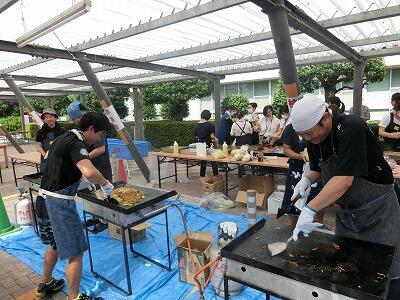 灼熱の中、保護者・職員で焼いて、詰めて、焼いて、詰めて