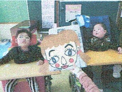 1月23日(木)福笑いをしました。3学期に入ってから、自分の顔を手鏡で見る勉強をしています。鏡を見ながら「ここは目ね」「ここは鼻だよ」「ここは口だね」と言いながら、顔を触っていくと自分の顔をじっと見つめたり、微笑んだりしています。