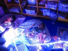 光遊びでは、星空の映像を見て、天の川に見立てたイルミネーションの光を感じました。