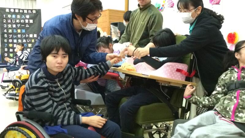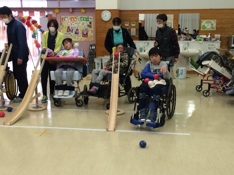 1,2年生が作成した式次第や花飾で飾った会場で行われ、楽しくチーム対抗ボッチャボウリング大会をしたり、歌を歌ったり、3年生がお別れのあいさつをしたりして別れを惜しみました。