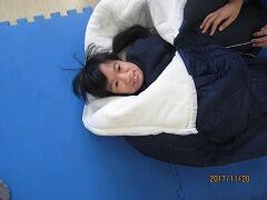 11月20日(月)に防災学習の一環として、段ボールや寝袋、簡易の防寒具を使用して暖かさを体験する活動に取り組みました。少々寒い日でしたが、まずは一度みんなで外に出て散策した後、部屋に戻り、寝袋などに潜り込んで暖かさを感じました。寝そうになる生徒や防寒具の手触りを感じる生徒など様々な様子を見せてくれながら楽しく活動することができました。