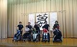 Aグループはリレー書道でそれぞれの思いをこめて、「夢」という文字を大筆で描きました。