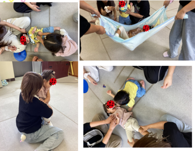 ふれあい遊びでは、大好きなパパやママと楽しくふれあいました。
