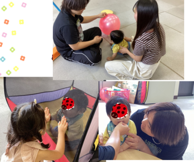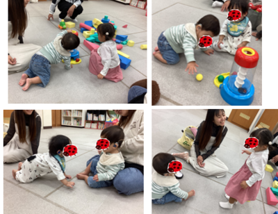 そのあとは自由遊び。お姉ちゃんが遊び方を教えてくれたり、並んで一緒に遊んだりと楽しく過ごしました。
