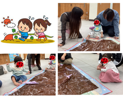 もうすぐお芋ほりがあるので、今日のところは畑に見立てたビニールに隠れているお芋を探します。