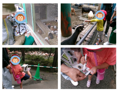 動物の見学では、お母さんと一緒にモルモットを見たり、自分からヤギに触ってみたり、フラミンゴの真似をしてみたりと動物に興味津々の子ども達でした!
