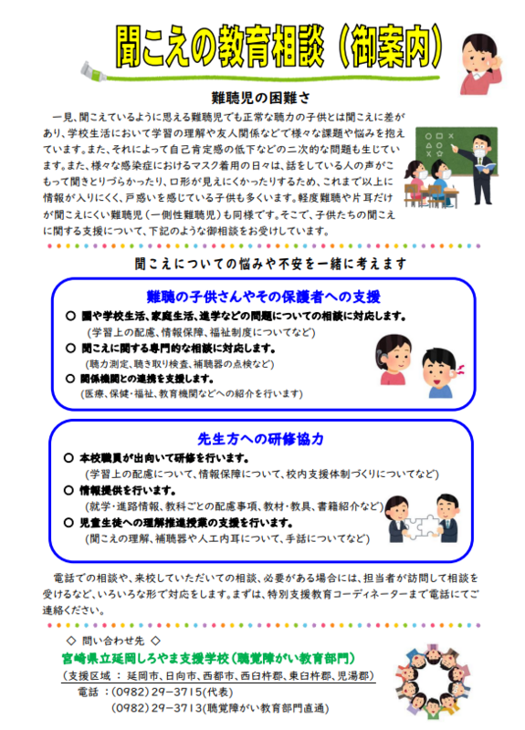 TEL 0982-29-3713(聴覚障がい教育部門直通)