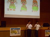 まず始めに、岡富中学校の1年生に向けて自分たちのきこえについて話をしたり、手話を教えたりしました。自分のきこえについて他者へ伝えたり、自分たちにとって大切な言語である「手話」を広めたりすることはとても大切なことです。その一歩としてとても良い経験を積むことができました。