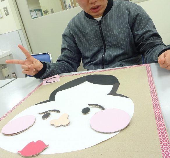 ひな飾りについて説明を聞いた後、くじ引きで順番を決め人形を飾りました。
