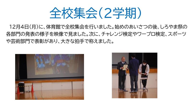 1月の学部集会(たいよう部門中学部)