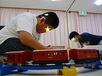 子どもの頃、職員が遊んでいたプラレールを持って来て